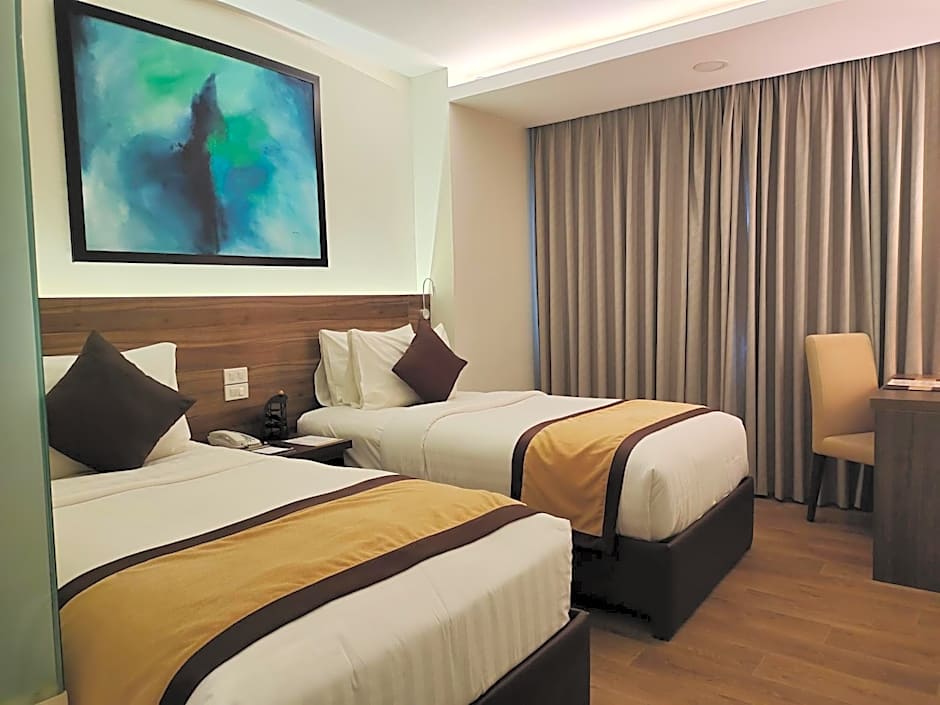 This twin/double room's standout feature is the rooftop pool. Offering free toiletries, this twin/double room includes a private bathroom with a walk-in shower, a bidet and a hairdryer. The twin/double room's kitchenette, which has a refrigerator, is available for cooking and storing food. The spacious air-conditioned twin/double room offers a flat-screen TV with cable channels, a mini-bar, a tea and coffee maker, a wardrobe as well as pool views. The unit has 2 beds.